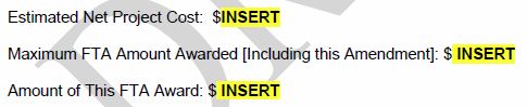 An interesting element of the Draft Full Funding Grant Agreement: While HART keeps telling us that the federal funding is in the bag, maybe they were not so confident when they sent their Draft FFGA to the FTA recently; they did not enter any dollar amounts: