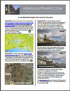 New handout: "A cost-disbenefit analysis of the Honolulu rail project": You read it right, disbenefit. There are no benefits whatsoever to building the rail project. Our new handout explains it all. Download it, print it and give it to friends, or attach it to an email and send it to them. Click on the image to download the handout