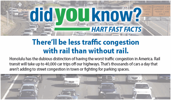 HART with another Lie of Omission: It is well documented that transit officials, nationally and internationally, have been notorious during the last 40 years for misrepresenting their transportation projects. They do not lie directly. Instead, they misrepresent their projects — more often than not by Lies of Omission. There are two definitions for a lie in the American Heritage dictionary. The first is, “falsehood.” The second is, “Something meant to deceive or give a wrong impression.” In the latter category are the indirect lies, the Lies of Omission — acts of deliberately not telling all the truth. HART, the rail transit authority, tells us that it is launching a new "Did You Know?" informational series of topics concerning the rail project, with this: