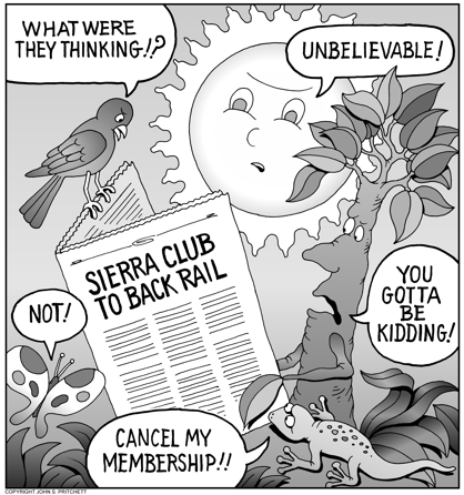 Pritchett does it again: It seems that the news that the Sierra Club was for THIS rail line was a little premature; they have yet to make up their minds. We have shown that BRT will be far more energy efficient than THIS rail line. That automobile traffic will be 23 percent more than we have today if we don't build rail and 21 percent if we do, which would not be a noticeable difference. Given the downside environmentally and the excessive cost, which might delay fixing the sewage treatment and water supply that the Sierra Club fought to get done, one wonders what there is to think about.