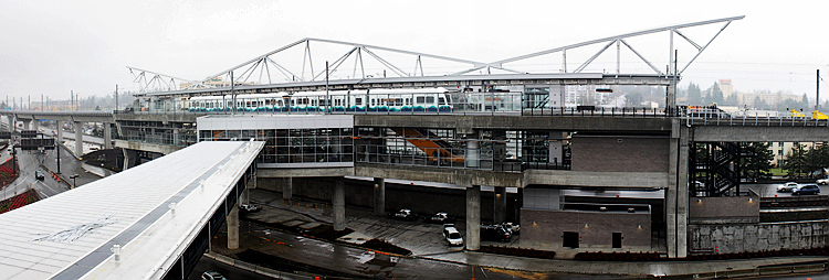 Rail opponents also might have shown the photo below of the 18-month old Sea Tac rail station in Seattle. Between the two of them they make the point that rail will ruin our City.