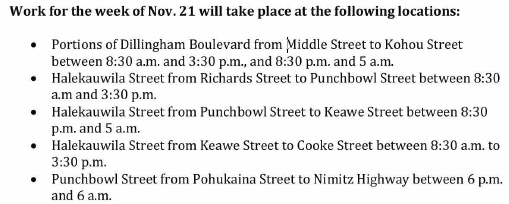 Here's just a taste of what's to come should they get to build rail: The City has just issued, "TRAFFIC ADVISORY: LANE CLOSURES FOR ARCHAEOLOGICAL SURVEY WORK IN URBAN HONOLULU." This is just a little taste of what would come. You have to imagine rush hour when half of Dillingham Blvd. is closed down at the same time that half of Nimitz is closed. You will love it. Here's what is coming for this week starting tomorrow morning:
