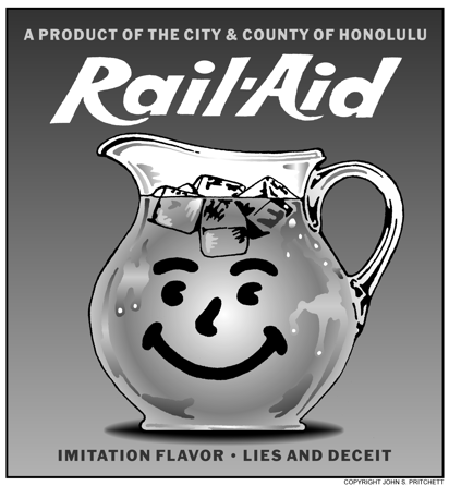 Pacific Business News reverses position to now oppose rail: Yesterday, PBN, which has long favored rail, reversed course and came out with an editorial strongly opposed to the rail line in its current form. Here are the final two paragraphs of yesterday's PBN editorial, which we hope you will read in its entirety: "The arguments outlined by Cayetano, Heen, Slater and Roth in their essay are compelling, and their reputations beyond reproach. With so much at stake, we hope that Hawaii’s business leadership makes sure its voice — regardless of stance — is heard. City Council members need the feedback, especially when so much about the project is changing. "In opposing plans for the elevated rail system as they now stand, we are not faulting the Honolulu Authority for Rapid Transportation, the semi-autonomous body created to oversee the project. But we would remind its members that the “R” in HART stands for “Rapid,” not “Rail.” We encourage them to seek better alternatives to the current plan, which by every indication is leading us down the wrong track."