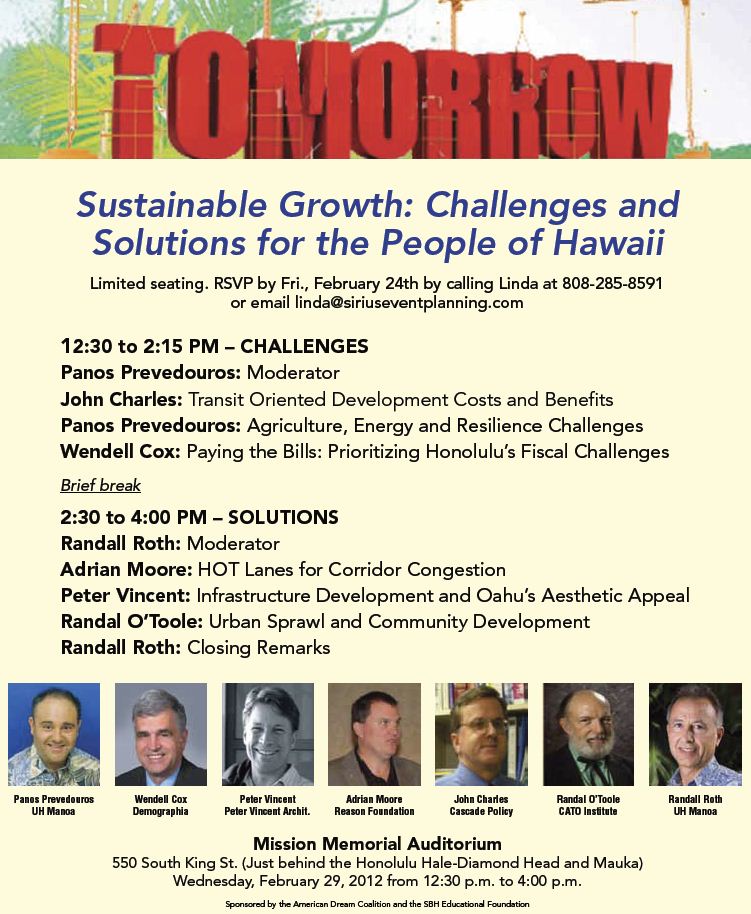 You have heard of sustainable growth and HOT lanes, but... ...now you can get the rest of the story from experts.