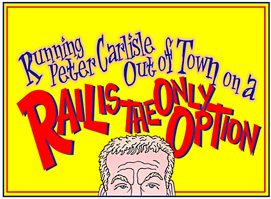 David Shapiro writes a great column that should be on the front page In brief the City told him that they really would "plow ahead," in Carlisle's immortal words, and build as much rail as they could even if they have no funding for it. And Caldwell tells him he would put it up to vote. The statements coming from Carlisle and Caldwell are so stupid that we have done what we normally do not do. We have reproduced Dave Shapiro's column and added a few thought of our own in bold face between the lines.